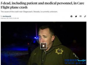 美国内华达州一医用飞机坠毁,患者在内5人死亡