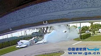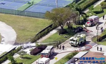 美国佛罗里达州一架小型飞机坠毁撞上汽车 致两死两伤