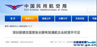 深圳获颁全国首张长期有效通航企业经营许可证