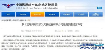 东北管理局批准颁发天鹤航空通用航空经营许可