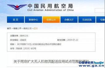 民航局发布《关于同意扩大无人机物流配送应用试点范围的通知》