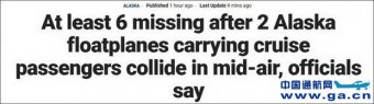 美国阿拉斯加2架水上飞机空中相撞 有6人失踪 10人受伤