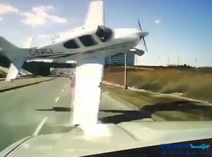 惊险!加拿大一小型飞机失控冲向一条公路险撞行驶小轿车