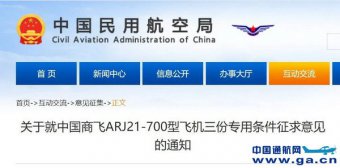 民航局: 国产ARJ21-700飞机专用条件征求意见发布
