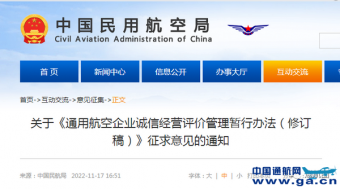 民航局就《通用航空企业诚信经营评价管理暂行办法(修订稿)》征求意见,11月30日截止(附修订对照表)