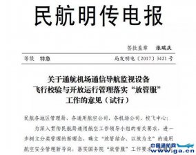 近日,民航局空管办发布了关于通航机场通信导航监视设备飞行校验与开放运行管理落实放管服工作的意见(试行)(以下简称意见)。 空管办结合中国民航设备运行保障与飞行校验工作实际情况,对现有规章进行分类、评估和剥离,运用改革创新思维,现就通航机场通...