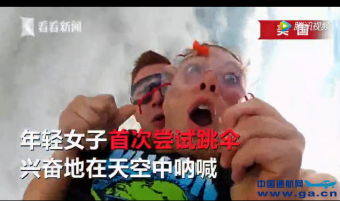 尴尬瞬间!跳伞女孩兴奋大叫 假牙飞出嘴巴砸中教练