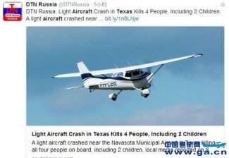 美国得克萨斯州一架小型飞机坠毁致4人死亡。图片来源:twitter。 美国得克萨斯州东南部城市纳瓦索塔28日发生一起小型飞机坠毁事故,机上包括两名儿童在内的4人全部遇难。 据当地ABC13电视台报道,这架四座位单引擎小型飞机当地时间上午8时17分从休斯敦一机场...