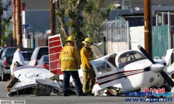 美国一架小型飞机坠毁 砸坏两辆小汽车