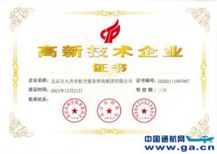 天九通航成为国内通用航空运营商中首家高新技术企业
