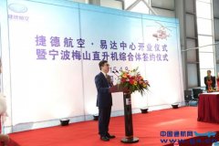 2015月4月8日,上海捷德航空技术有限公司(以下简称捷德航空)在宁波易达中心举行了宁波梅山直升机综合体签约仪式暨捷德航空易达中心开业仪式。值此,规划用地为500亩的宁波梅山直升机综合体正式落户梅山岛。 图:捷德航空总裁江文全致欢迎词 图:宁波梅山直...