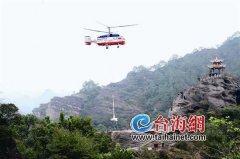 东南网11月19日讯(海峡导报记者 李大荣 通讯员 罗展阳 陈析兴 文/图)17日上午,一架直升机在龙岩市连城县冠豸山景区上空盘旋。这是景区在进行石雕吊装作业,据了解,启用直升机吊装石雕,在龙岩尚属首次。 据悉,从16日开始,赑屃、螭吻、囚牛等龙子落户冠...