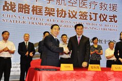 2014年9月5日上午9点30分,北京首航直升机通用航空有限公司与北京市红十字会在北京歌华开元大酒店正式签订战略合作协议。同时,到场一起签订协议的还有思奥思国际旅行援助服务有限公司、中国人寿保险公司、工银金融租赁有限公司及北京市体育局等多家单位。中...