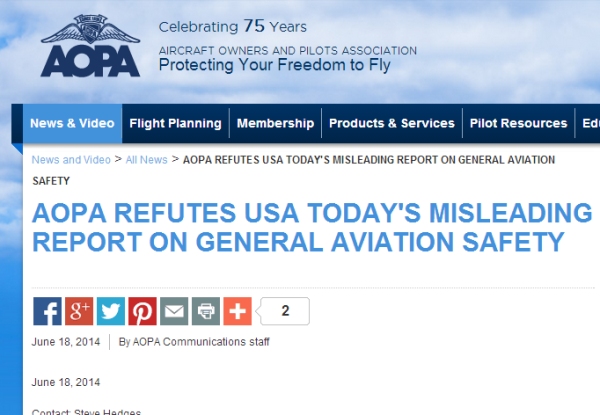 图:AOPA立刻反击,认为这篇报道有误导性。