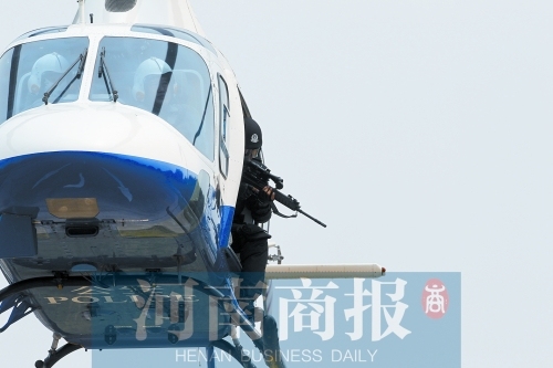 昨日上午10时,在位于郑州市南郊郑平路的郑州市公安局警务飞行大队驻地院内,3架警用直升机的轰鸣声已经响起,参与巡逻的特警队员全副武装待命出发。