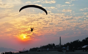 图:夕阳西下,阿布在天空滑翔。(翻拍)