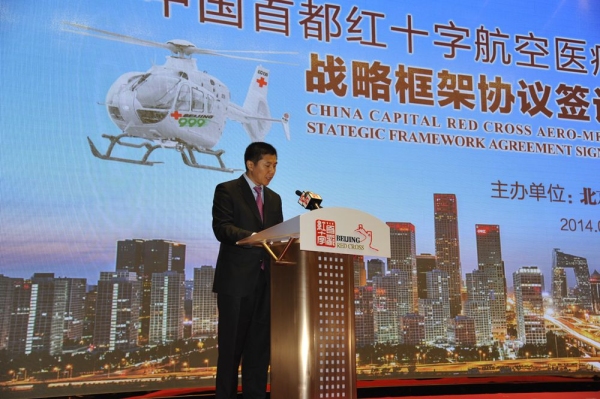 图:首航直升机总裁徐立冬签订战略协议 民航资源网2014年9月5日消息:2014年9月5日上午9点30分,北京首航直升机通用航空有限公司与北京市红十字会在北京歌华开元大酒店正式签订战略合作协议。同时,到场一起签订协议的还有思奥思国际旅行援助服务有限公司、中国人寿保险公司、工银金融租赁有限公司及北京市体育局等多家单位。中国红十字会领导、北京市人民政府领导、北京市有关委办局等各界人士皆出席仪式。 仪式上,北京市红十字会相关领导负责人及业内专家对首都航控救援体系建设现状进行了相关介绍。随后,北京市红十字会与北京首航直升机通用航空服务有限公司及其他合作单位共同签署战略合作协议。