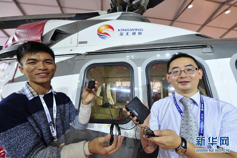 11月13日,金汇通航工作人员在展示小巧的直升机低空飞行监视系统组件。当日,以直升机销售、托管为核心业务的上海金汇通航在第十届珠海航展上展示了自主研发的直升机低空飞行监控系统。这套兼具实时动态监控、飞行轨迹记录、飞行数据统计等功能的直升机监控系统可实时向总部报告位置、高度、速度、油量等数据,具有小巧便携、安装简便的特点。该系统经过两年多运行,已得到了直升机用户和军民航管理机构的认可。新华社记者 杨光 摄 |