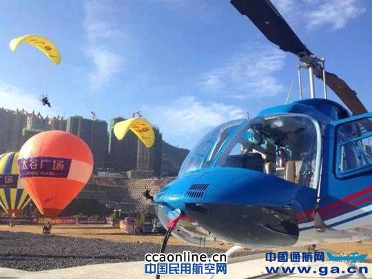 此次太谷广场项目启动之际, 力邀驼峰通航派出2架直升机(一架BELL206L4,一架罗宾逊R44),以及1架波兰ZEN1旋翼机强势助阵,作静态展示及体验式飞行。