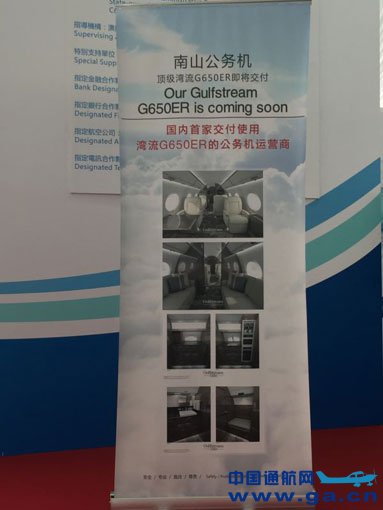 11月6日,第四届澳门公务航空展(以下简称:MBAE2015)如期在澳门开幕,南山公务机携湾流G450、湾流G550进行参展。同时,本届航展上,南山公务机首次向公众宣布了南山机队又一重量级新成员的加入,即2016年二季度即将交付运营的顶级湾流G650ER飞机,此架飞机的交付这也将成为国内首架交付运营的湾流G650ER公务机。