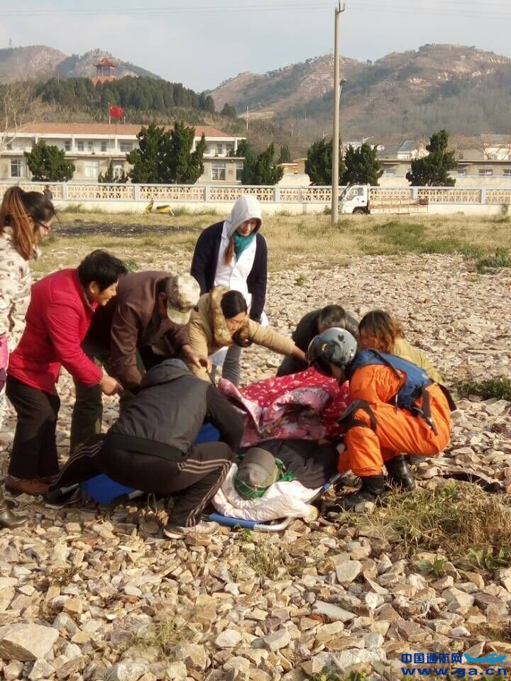 8时36分,B-7312从蓬莱沙河口机场起飞,直奔救助区,9时整,到达大钦岛停机坪。在当地政府的大力配合下,机组人员以最快速度将伤员和陪同接上直升机。9时09分,直升机返航,21分后落地蓬莱沙河口机场,病号由120急救车接往蓬莱市中医院进行治疗。此番救助,打响了渤海湾地区立冬救助第一枪。