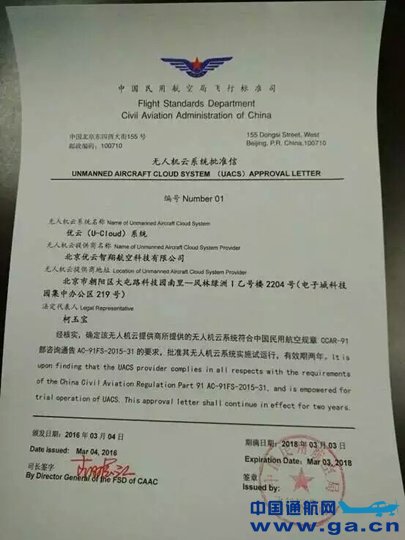日前,由中国 AOPA发起建设的“优云”(U-Cloud)无人机云系统正式获得民航局相关部门的运行批文。 ![]() 无人机云系统批准信 根据民航局2015年12月29日发布的《轻小无人机运行规定(试行)》,无人机云系统(简称无人机云),是指轻小型民用无人机运行动态数据库系统,用于向无人机用户提供航行服务、气象服务等,对民用无人机运行数据(包括运营信息、位置、高度和速度等)进行实时监测。接入系统的无人机应即时上传飞行数据,无人机云系统对侵入电子围栏的无人机具有报警功能。 据了解,此次获民航局飞行标准司批准的无人机云系统,由协会发起成立,北京优云智翔航空科技有限公司负责运营。获批的运行有效期为两年,从2016年3月4日至2018年3月3日。 从各方公开的信息来看,“优云”系统目前在一般地区覆盖4-150公斤,北上广等大城市,则覆盖1.5公斤以上范围作业的主动监视的民用无人机。对于《轻小无人机运行规定(试行)》中规定的需要接入被动反馈系统的无人机监测功能尚未谈及,还有一定差距。因此,在“优云”系统开始试运行后,应该还会按照相关规定的要求定期对系统进行更新扩容,通过各种技术手段扩展其适用范围。有消息称,现在“优云”系统已经可以覆盖1500米以下包括直升机在内的各种低空慢速航空器。 ![]() “优云”系统界面 “优云”的诞生与试运行,是无人机市场对于无人机云系统需求的必然结果,与此同时,也得益于互联网及云计算技术的发展与应用。它的出现,将提高无人机运行的监管效率,降低无人机企业及个人的运营成本,消除安全等问题对于无人机发展的制约,推进无人机行业健康规范化发展。 首先,“优云”系统的试运行,将大幅度提高无人机运行的监管效率。无人机的监管与有人机不同。无人机的成本较低,技术要求不高,因此数量庞大。不仅如此,由于无人机结构简单、体积较小且飞行高度低,很难做到及时有效的跟踪与管理。通过“优云”系统,可以直接对无人机的位置、高度、速度等数据进行实时监测。利用互联网和云技术的手段,将海量的文字及数据信息通过系统终端直观呈现。 与此同时,“优云”系统可以通过多种类型的数据终端,可以实现空军、民航、公安等多部门协同管理。辅以电子围栏的设定,对入侵电子围栏的无人机发出警报甚至阻止其进入特定区域,提高对应急突发事件的反应速度,并减少现场监控人员的需求。 其次,“优云”系统的试运行,将降低无人机企业及个人的运营成本,推动市场的快速发展。在以往的运营中,由于飞行计划审批时间长、飞行信息不对称等问题,运营商及个人往往需要承担大量的时间、人力及风险成本。通过“优云”系统的服务,不仅提高了与监管部门的沟通效率,做到飞行计划的快速审批,而且可以获取飞行所需的航行、气象等全部信息数据。虽然,使用“优云”系统将承担部分服务费用,但是,综合考量,无人机企业及个人的运行成本还是大大降低,这对于发展中的无人机市场来说,无异于又打上了一针兴奋剂。 最后,“优云”系统的试运行,将有效解决“黑飞”等问题带来的安全隐患,保障无人机行业的健康规范化发展。众所周知,“黑飞”情况下的安全隐患要远远大于正常飞行。通过“优云”系统的试运行,将有效减少“黑飞”现象的发生。一方面,“优云”系统整合了最全面的无人机系统及无人机驾驶员数据,并根据民航局的要求进行定期的更新与扩容。加上无人机飞行计划快速报批功能,使得“优云”用户的飞行完全满足各项要求,并通过有效监管,提高了“黑飞”的风险成本;另一方面,由于“优云”系统大大降低了无人机的运行成本,将会对无人机运营商,尤其是微小型企业及个人产生极大的吸引力,鼓励全行业减少甚至消除黑飞现象。 “优云”系统的试运行,离不开各方的努力。政府层面,这一举措体现了民航局对中央“简政放权”政策的具体落实,突显了“管理”向“服务”的积极转变。市场层面,“优云”系统的运行也是以中国 AOPA为代表的相关单位及业内多位专家共同努力的结果。它承载了众多人的希望,寄托着人们对无人机行业发展的美好理想。 中国通航网 www.ga.cn 通航翻译 www.aviation.cn 本文链接地址:“优云”(U-Cloud)无人机云系统获批复 |