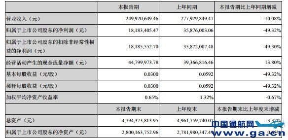报告显示,中信海直第一季度营业收入达到2.5亿元,同比减少10.08%;归属于上市公司股东的净利润为1818万人民币,同比减少49.32%;本报告期末,总资产为47.9亿元,同比减少3.37%。