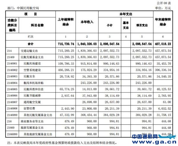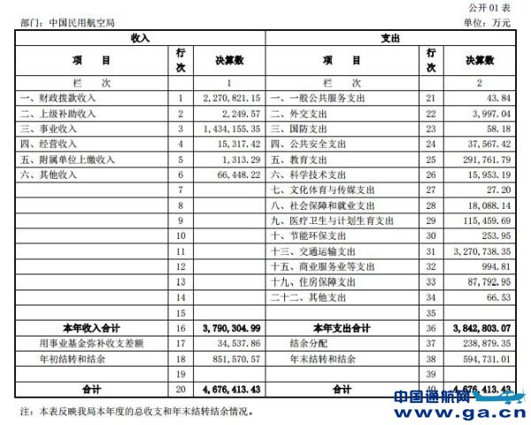 近日,民航局公布了2015年度部门决算表。民航局2015年度总收入4,676,413.43万元,其中本年收入3,790,304.99万元;2015年度总支出4,676,413.43万元,其中本年支出3,842,803.07万元。