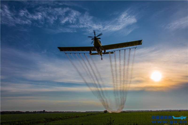 本文链接地址: 北大荒通航空中拖拉机飞机(AT-802F)在垦区喷洒作业