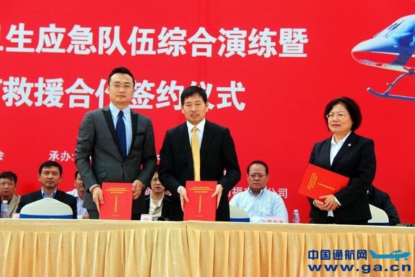 图:厦门市航空医疗救援保障合作签约。 直升机航空医疗救援保障“海上救援”主题模拟突发事件演练后,一支悉心挑选并经过全新武装的厦门市省级卫生应急救援队伍“重量”登场。据悉,该队伍包含紧急医学救援队和心理干预队,紧急医学救援队由市急救中心、市疾控中心、市第二医院组成,心理干预队由市仙岳医院组成。目前,紧急医学救援队员42名,心理干预二队员20名,经过数次演练后,队伍已逐步操练成熟并具备一定的野外救援能力。 活动现场,厦门市卫计委分别与东二飞及上海金汇通航关于“厦门市航空医疗救援”的合作签约。上海金汇通用航空股份有限公司成立于2006年,是经中国民用航空局批准成立的甲类通用航空公司,直升机医疗救援是金汇通航于2015年启动的重大项目。为此,金汇通航一次性订购了150架专业医疗构型的直升机,通过与院前急救单位、医院的合作,构建一个可覆盖全国的、立体化的直升机航空医疗救援网络,为社会大众提供院前急救、院间转运等常态化的、及时响应的航空医疗救援服务。同时,项目将以市场化运作为主要运作模式,联合各大保险机构共同推出易于社会大众接收的普惠型保险产品,让航空医疗救援从此不再奢侈。