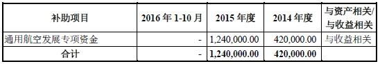 图:高翔通航获得通用航空发展专项资金情况。