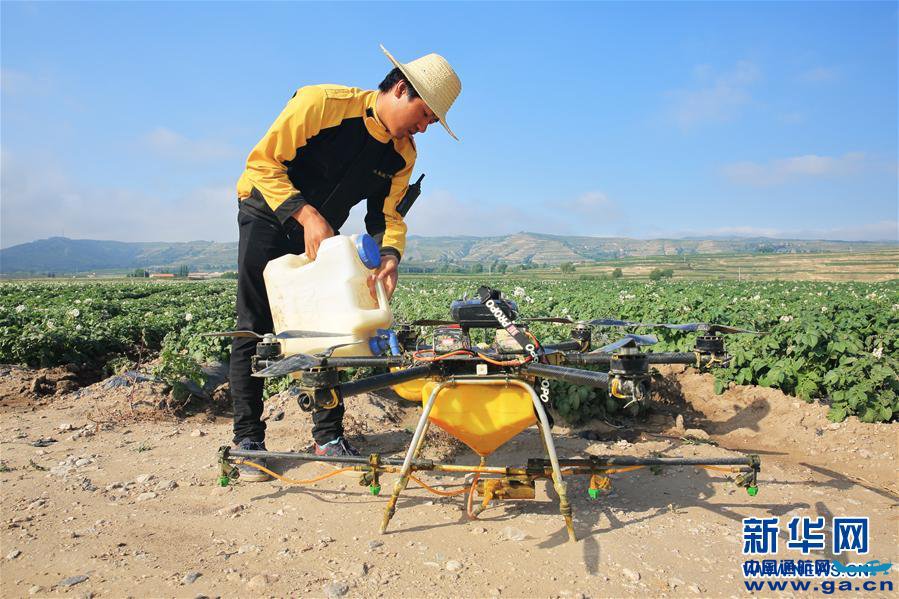 ![]() 在甘肃省定西市安定区香泉镇马铃薯种植基地,工作人员向无人机中添加农药。近年来,甘肃省定西市安定区农业部门积极推广植保无人机技术,鼓励种植合作社利用无人机对农作物进行喷药作业,以提高作业效率、降低管理成本。新华社发(陈永刚 摄)