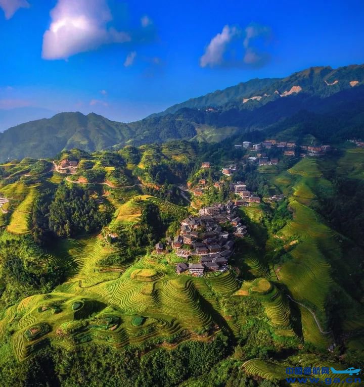 广东 · 韶关丹霞山 点击放大 作者:天空之城用户281076134 地点:丹霞山 来源:天空之城 作为广东省首个世界自然遗产,灵秀的丹霞山赤壁披着蓊郁的森林作外衣,从观感上和山石裸露、浓墨重彩的西北丹霞大相径庭。以往在这个老牌景区,最受欢迎的游览方式也许是乘索道上山,俯瞰倒映在锦江之中的奇峰怪石,或干脆乘竹筏在江上漂流。 如今,你大可以摆脱山径水道的束缚,从空中俯瞰阳元石和长老峰的奇绝山水。很多旅行者会在阳元石景区看日落,到长老峰景区观日出,有了无人机,就更值得你起个大早,将云蒸霞蔚下碧水绕丹山的景致尽收眼底。 广西 · 龙脊梯田