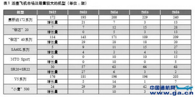 ![]() 目前,活塞飞机市场保有量超过100架的机型主要是赛斯纳172系列(172R和172S)、“钻石”40系列(“钻石”40和“钻石”40D)和我国Y5(Y5B、Y5BD、Y5BK)系列。其中赛斯纳172系列、“钻石”40系列和SR20系列是目前国内固定翼飞行培训的三大主力机型。SR20系列由于销售价格和运行成本较高,市场占有率不高,赛斯纳172系列在飞行学院、青岛九天和湖北蔚蓝等航校中占有绝对的优势,而“钻石”系列则得益于国内建厂的技术及航材的支持,受到新成立CCAR 141部航校以及大量按CCAR 61部开展训练的通航企业和航空俱乐部的青睐,年交付量已持续领先于赛斯纳172系列。