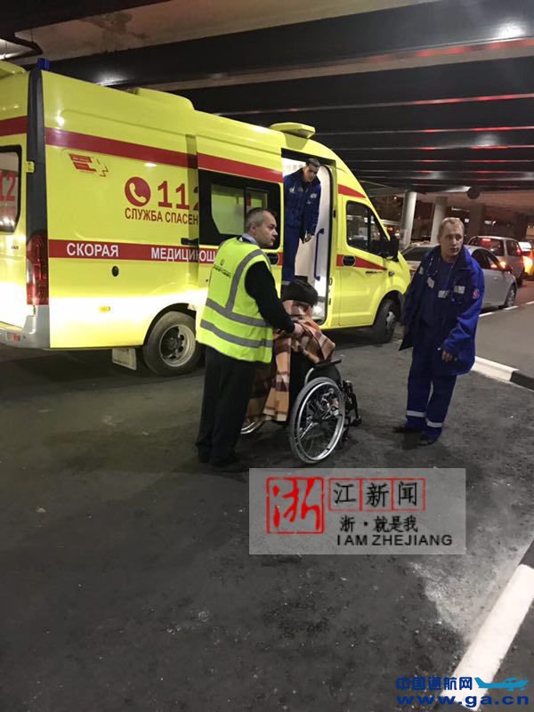 ![]() 飞机迫降莫斯科后,许诺被送上救护车。
