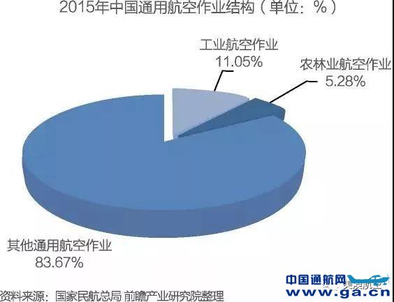 ![]() 2、通用航空作业时间分布 2015年,全行业完成通用航空生产作业飞行73.50万小时。其中:工业航空作业完成8.12万小时,比上年降低3.6%;农林业航空作业完成3.88万小时,比上年增长1.5%;其他通用航空作业完成61.5万小时,比上年增长11.31%。
