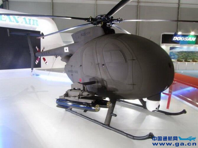 此次首尔国际航空航天和防务展上,大韩航空(kal-asd)展示了其KUS-VH无人机的样机。这是一架MD-500轻型直升机,目前大韩航空已经将该机正式命名为KUS-10无人机。 该机已经于去年进行了首飞。而在首飞过程中并非没有人驾驶,而是有一名工程师在直升机中承担了部分飞行任务。