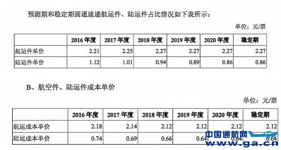 在圆通的招股书中,有多项数据显示了航空件的成本高昂:2016年1-3月中,航空运输成本占总运输成本的23%,占比远高于件量占比;航空件单价是陆运件的一倍左右,单件成本却是陆运件的3倍;2016年每件航空件单件利润为0.03元,而陆运件的单价虽不高,但单件利润可达到0.38元,利润率达到34%。 根据圆通招股书的预计,2017年的单件利润可达到0.11元,到2020年可达到0.15元,年增长率只有1%。在稳定期2020年时,航空件单价将稳定在2.27元,相对于2016年的2.21元,年增长率只有1.5%。