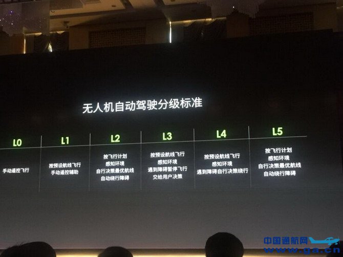 ![]() 目前,无人驾驶系统基本上形成了普遍认同的分级标准,彭斌对无人机的自动化驾驶也做了分级,从L0到L5。彭斌认为目前极飞的无人机达到了L4的阶段,明年争取达到L5。