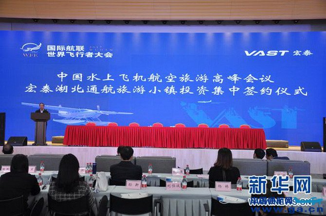 ![]() 图为中国水上飞机航空旅游高峰会议暨宏泰湖北通航旅游小镇投资集中签约仪式现场。新华网 陈剑 摄