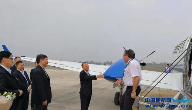![]() ![]() ![]() 西华航空董事长曾波与西华航空总经理李大军迎接机组人员