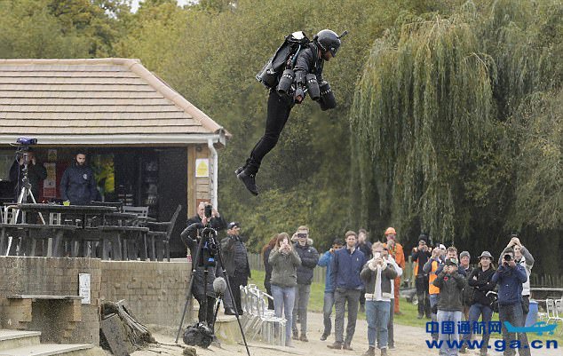 中国通航网 www.ga.cn 通航翻译 www.aviation.cn 本文链接地址:英发明家试飞喷气飞行装备 时速达48千米破纪录 |