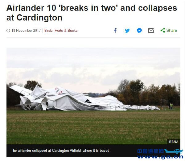 IT之家11月19日消息 据BBC报道,在英国贝德福德郡,世界上最大的飞行器Airlander10于当地时间18日早晨在一片田地上坠毁。