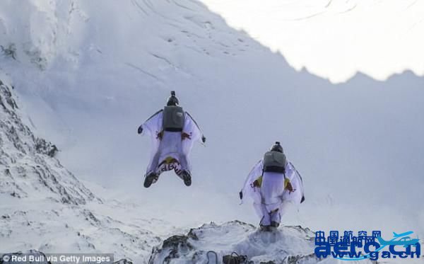 据报道,冒险家福根和利弗特戴着具有摄像功能的头盔,身穿一套专业的飞行翼套装,从瑞士阿尔卑斯山著名的少女峰上一跃而下,以最高137公里的时速进行无动力滑翔,仅靠肢体动作来掌控方向。