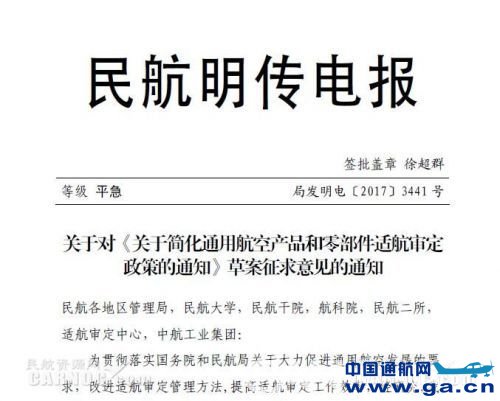 本文链接地址:关于对《简化通用航空产品和零部件适航审定政策的通知》草案征求意见通知”。