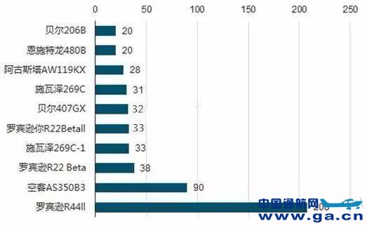 ![]() 中国内地直升机机型数量 TOP10(架次)