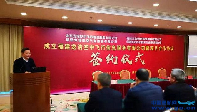 为贯彻落实福建省《关于促进通用航空业发展的实施方案》文件精神,20日的签约仪式上,福建龙浩空中飞行信息服务有限公司还与中国民用航空华东地区空中交通管理局福建分局签署了项目合作协议,双方将合作开展福建省飞行服务站系统的规划、建设和运营;促进系统融合,实现信息共享;并在技术、人才方面开展合作。