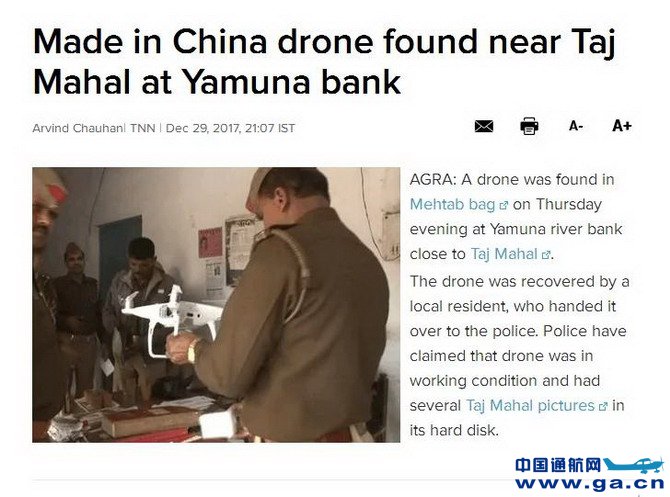 中国通航网 www.ga.cn 通航翻译 www.aviation.cn 本文链接地址:印媒:印度泰姬陵附近发现一架中国造无人机 |