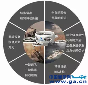 系留无人机作为高空基站可以搭载自组网电台、集群微型基站、微型基站等多种通信载荷,形成多种灵活的通信应用配置方式。高空基站空中部分由高空载体搭载基站设备、基站天线、机地连接设备组成。其中高空载体为系留无人机。基站设备为有线传输方式,空中部分通过系留绳固定在载体。地面部分由地面操控系统、用于无人机和地连接的传输设备、用于与核心网连接的地面传输设备组成。与核心网连接的地面传输设备可以为光纤传输设备,也可以是通过卫星进行传输接入核心网的传输设备。 ![]() 系留无人机作为高空基站的特点:地面发电机进行供电,24小时不间断滞空,系统可由卡车、船舶等平台装载,支持人工控制模式和自动控制模式(人工控制模式时,可通过摇杆控制无人机运动;自动飞行模式时,可实现无人机自动悬停和车载的自动跟随)通过地面站设置飞行高度,支持一键起飞,通过地面站一键降落和回收,运动平台(车辆、船舶等)静止时,无人机悬停在平台上方,运动平台(车辆、船舶等)运动时,无人机自动跟随平台运动。
