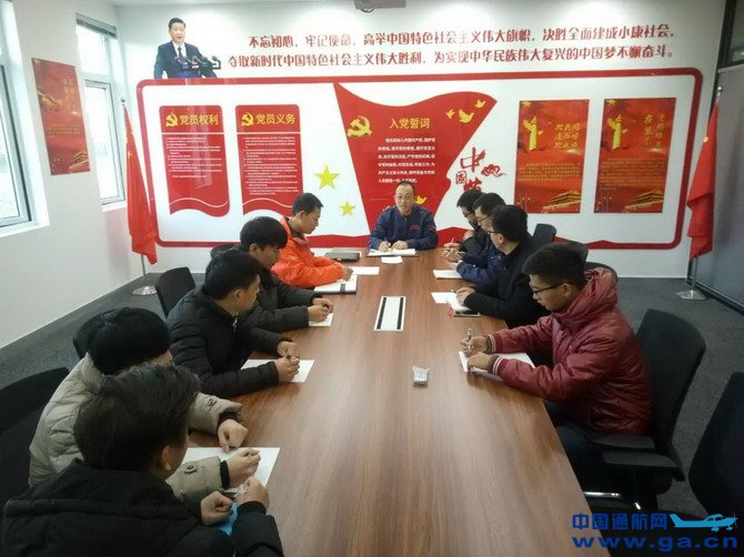2018年1月12日,在金汇通航总部一楼党群活动室,中共金汇通航党总支书记安君组织召开了金汇通航机务部党支部委员选举会议,中共正阳集团党委书记汪德平同志出席了会议,在机务部党支部党员的一致同意下选举俞东同志、杨银堂同志、胡天敏同志分别为机务部党支部书记、组织委员、宣传委员。